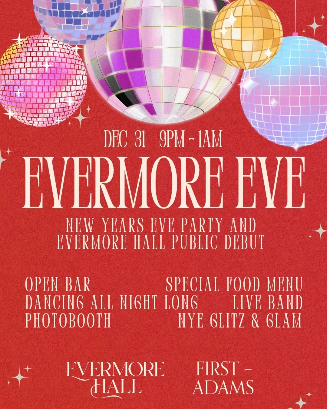 We’re teaming up with Evermore Hall to ring in 2026 and debut their amazing new space! Come party and join us for an unforgettable night with a live band, photobooth, passed hors d’oeuvres, bubbly toast, and more!!!